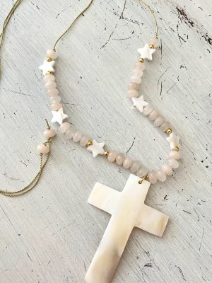Por su parte, la cruz de nácar se distingue por su brillo suave y su toque sofisticado. Los reflejos nacarados le dan una apariencia delicada y elegante, ideal para quienes desean un detalle más refinado. Al igual que la cruz de madera, la cruz de nácar permite elegir entre varios acabados y opciones de decoración para personalizarla y hacerla aún más especial.